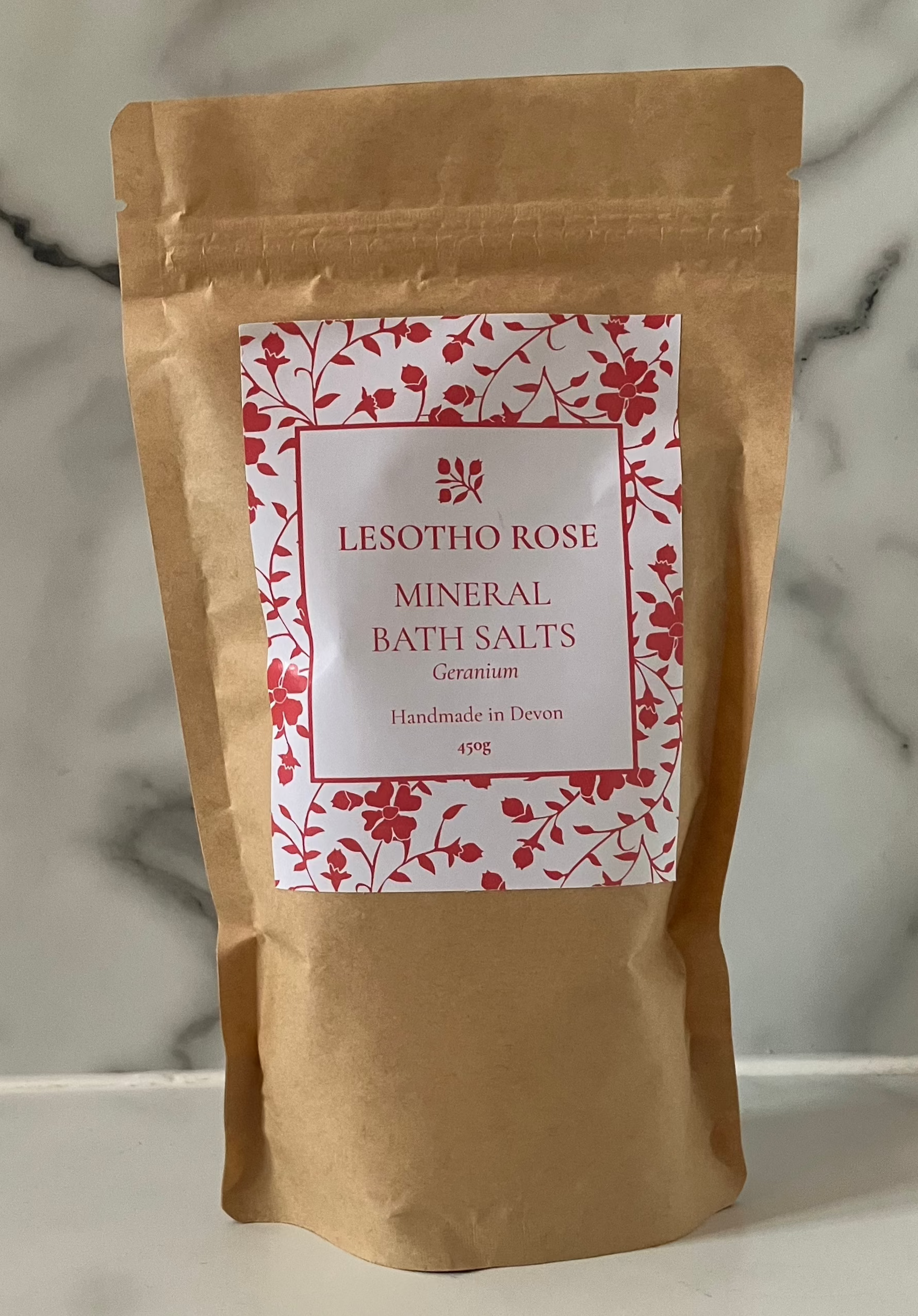 Crafted with a luxurious blend of Epsom salts, Dead Sea salts and Himalayan salts, these bath salts are infused with the calming aroma of pure geranium essential oil, known for its mood-enhancing and skin-nourishing properties.