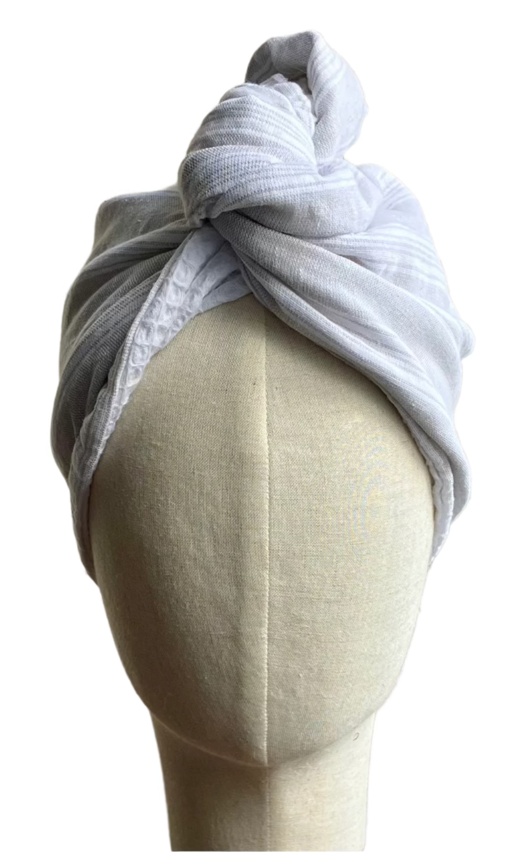 Crafted from waffle cotton and Turkish Hammam towelling, this luxurious handmade turban is super-comfy and perfect for drying your hair