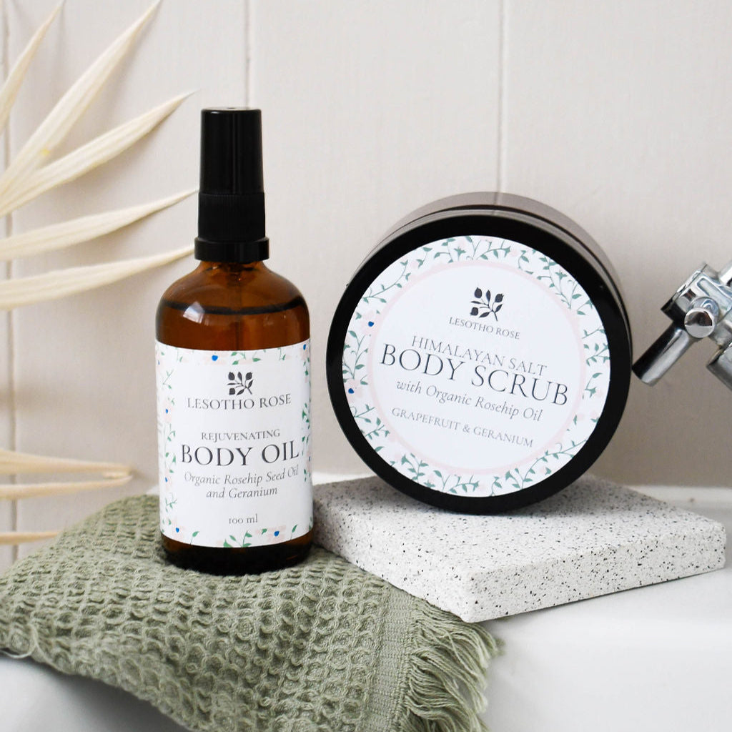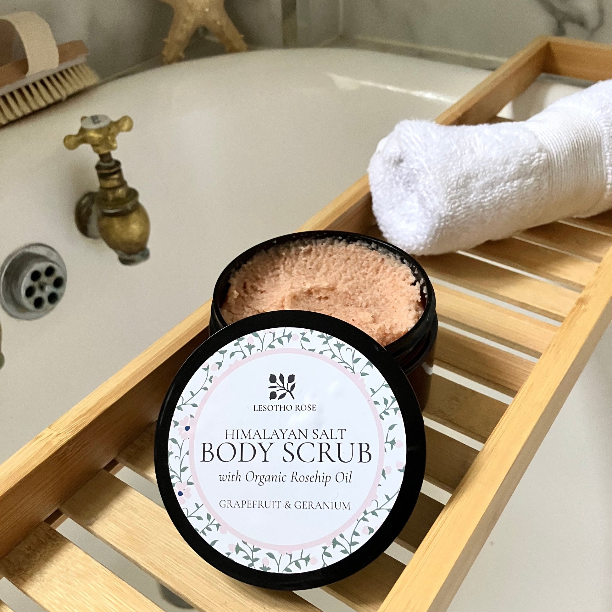 Himalayan Salt Body Scrub with Organic Rosehip Oil - Grapefruit & Geranium